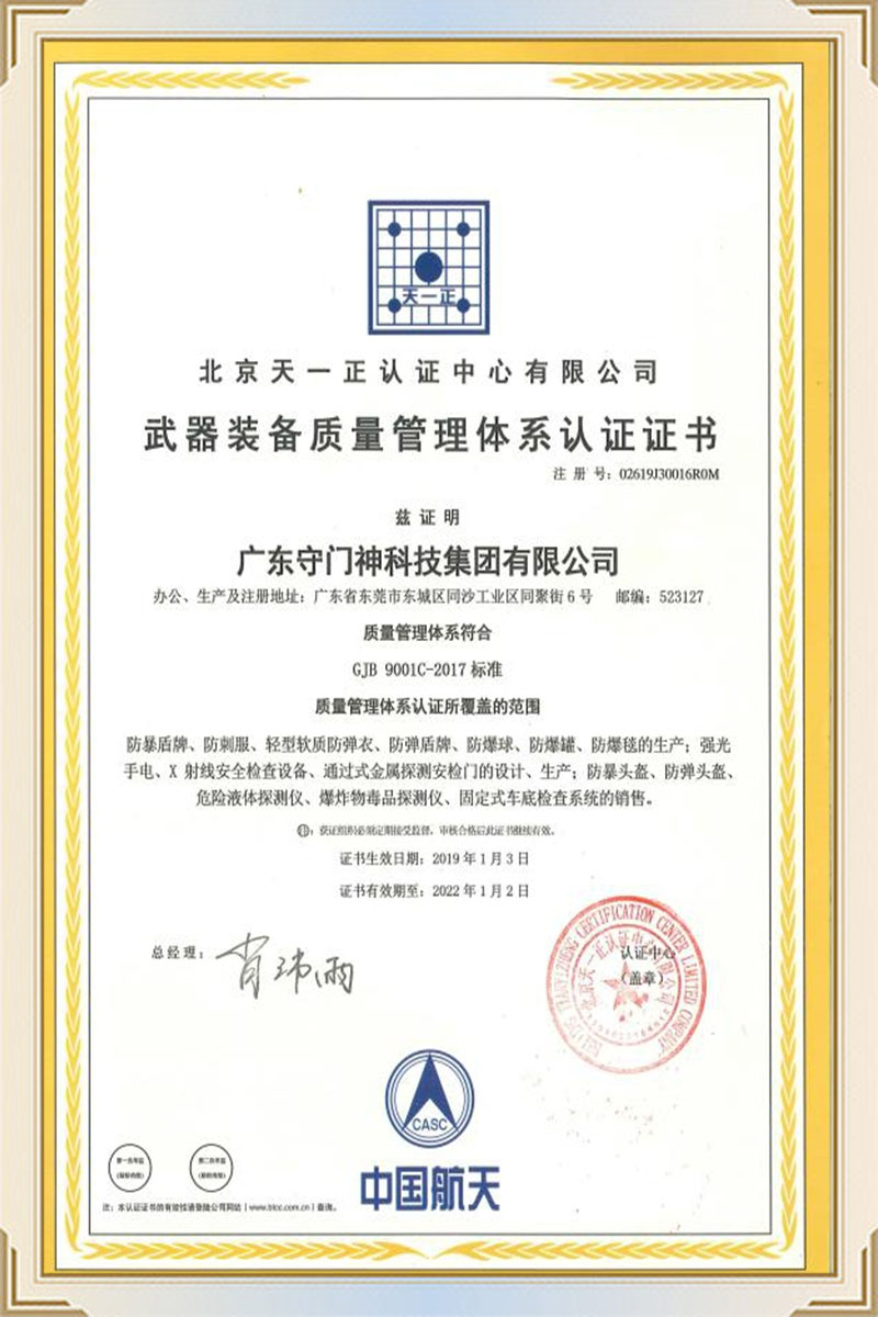 武器裝備質量管理體系認證證書