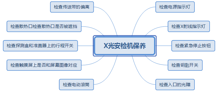 根本操作是從上往下,X光安檢機上方2個指示燈和緊急按鈕和鑰匙開關→觸屏與圖屏對應→入口光障→滾筒→行程開關→傳送帶→散熱口