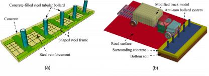 相關領域的研究學者當然需要對這種結構的合理性作出分析判斷。LS-DYNA等軟件可以分析多剛體動力學問題,借助這類軟件,得到技術支持,相關企業開發出產品,通過試驗可以確保產品的安全性能。美國和英國分別在2003年和2007年頒布了汽車防護欄的質量標準。如果仿真或者試驗結果能夠達到相關標準,就可以投入研發生產。在數值模型中,通過防撞柱系統、周邊的混凝土、周邊的普通地基、路面、汽車動量等進行建模計算,可以預測分析結果。